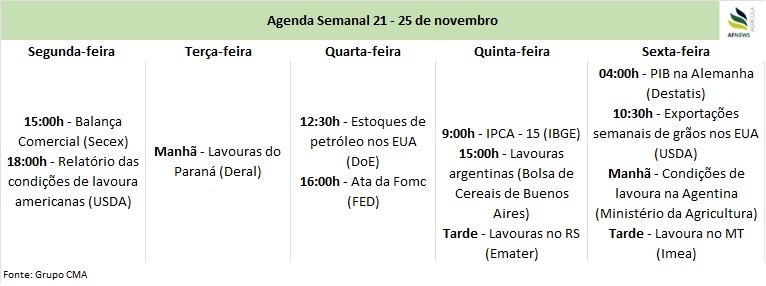 Eventos ligados ao agronegócio para a semana dos dias 21 a 25 de novembro: