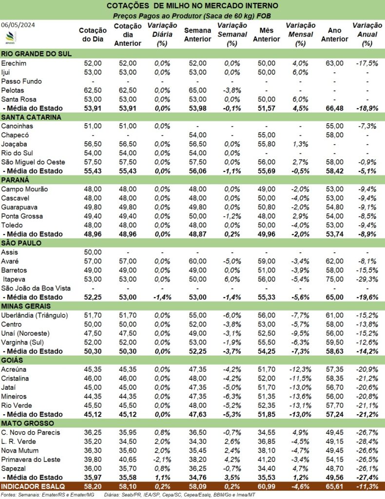 Além disso, o clima não está favorável para o milho safrinha na região Sul do país, e já temos reduções confirmadas na produção do cereal para os estados do Paraná e Mato Grosso do Sul.