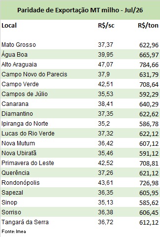 No comércio exterior, o milho brasileiro ainda se mostra pouco competitivo, apesar do recuo no preço FOB, reflexo da queda nos custos logísticos, especialmente em regiões com escoamento ferroviário.