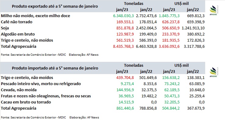 Nesta quarta-feira (01) tivemos a atualização da Balança Comercial de janeiro, divulgada pelo Ministério da Economia. Segundo os dados da Secex, o acumulado de milho exportado no mês foi de 6,348 milhões de toneladas! Esse número representa um aumento de 132% no volume exportado quando comparamos com janeiro de 2022.
