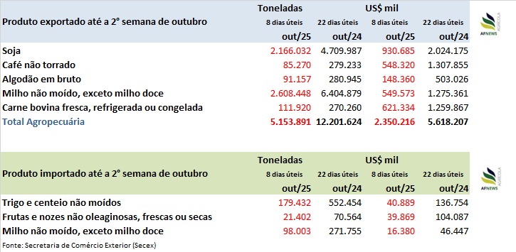 Dados da Secretaria de Comércio Exterior (Secex) apontam que, até a segunda semana de outubro (oito dias úteis), o país importou 179 mil toneladas de trigo e centeio não moídos — volume equivalente a 32,5% do total adquirido em outubro de 2024 (552 mil toneladas em 22 dias úteis).
